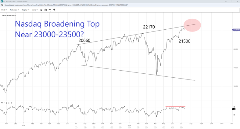 Inflation in the US is expected to rise due to the impact of tariffs on input costs and could influence the Fed's decision on cuts, as Chair Jerome Powell has cited the tariffs' effects as a reason for caution. Although the market is uncertain about the timing and likelihood of a Fed cut, the probability of a September cut has dropped recently. However, if inflation fails to meet expectations again, traders might start pricing in a September rate cut. Lower borrowing costs coupled with falling consumer prices could boost the tech-heavy Nasdaq index to new highs.