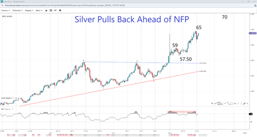 Silver Profit-Taking: Where Next for Metal? Precious metals were higher in the wake of the Fed's decision, with gold hitting a 7-week high ahead of the NFP. However, silver came off its record high last Thursday. Analysts attributed the pullback in silver to profit-taking after the metal was up 10% so far this month. A weaker dollar, combined with geopolitical concerns, is expected to support the precious metals complex amid demand for safe-haven assets heading into the extended holiday