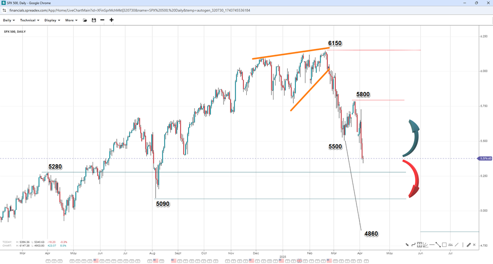 The silver lining could be a significant downturn convincing the than anticipated. The yield on the benchmark 10-year Treasury fell to 4.04%, a notable drop from the 4.2% before the announcement. However, the futures market hasn't changed all that much just yet, with the prior for the next FOMC meeting in May dropping to 70%. Analysts suggest that it will be difficult for the Fed to ease enough to support the markets in the near term, as the tariffs are expected to have an inflationary impact. The Trump Administration seems satisfied with the results of the tariffs, reducing any hopes that the market downturn could prompt a softening of the White House's stance. For now, markets appear inclined towards the downside, waiting to see if data such as the NFP and upcoming CPI figures will provide some form of floor to bounce off.