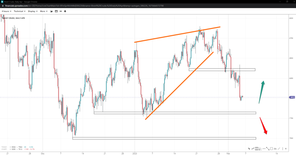 Bears recaptured the $80 handle as part of a possible correction typical of leading diagonals. With the pullback eying $78 in the short term, an opportunity for an upward leg towards $84 could be provided soon. But failing to defend the base could invalidate the pattern, bringing a double-bottom down at $75 on the table.