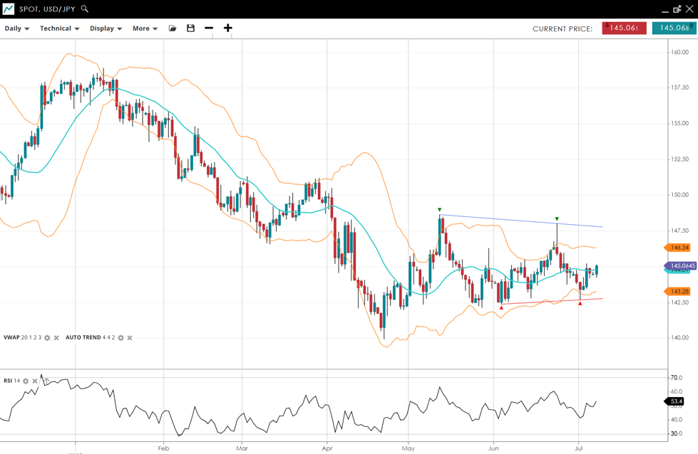 | USD/JPY | Neutral | Range | 145.06 | 145.06 | 143.28 | 146.34 | 53 |