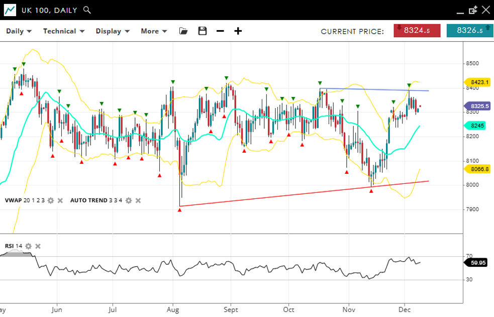 | UK 100 | Neutral | Consolidation | 8325 | 8245 | 8066 | 8423 | 59 |