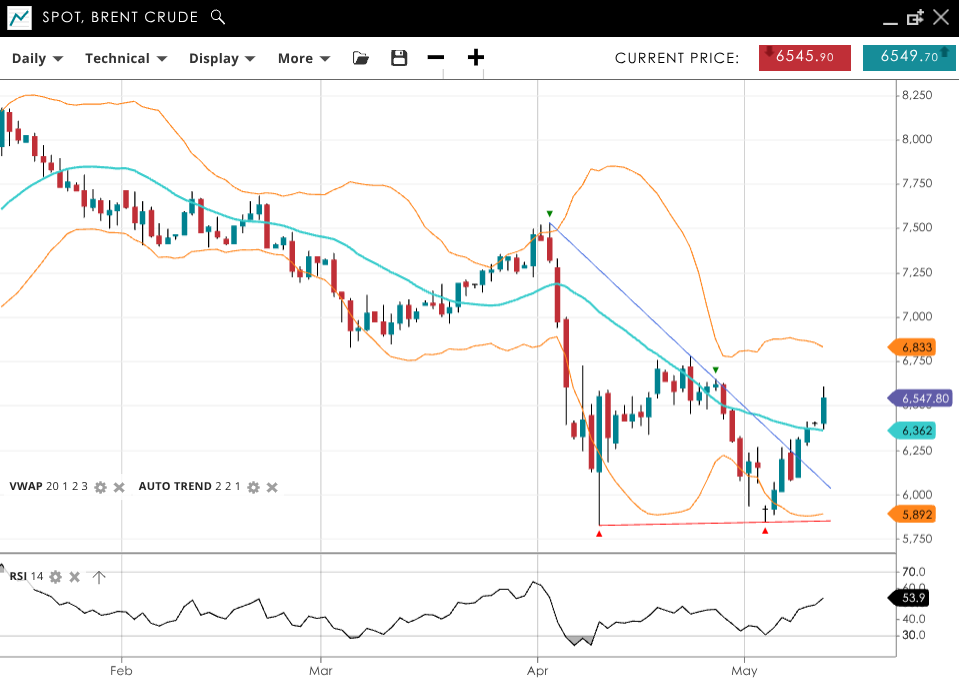 | Brent Crude | Bullish | Impulsive | 6549.7 | 6362 | 5892 | 6833 | 53.9 |