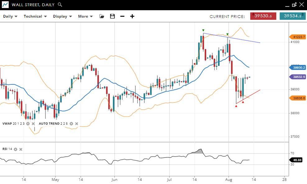 Wall Street continues to show a bullish trend but has entered a corrective phase, with the price declining to 39,532, just below the VWAP of 39,930. This correction may soon transition into a bearish trend if the downward movement continues. The support level is now at 38,636, while resistance has increased to 41,223. The RSI has dropped to 46, signalling a shift towards bearish momentum.