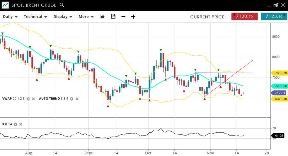 | Brent Crude | Neutral | Consolidation | 7123 | 7289 | 6973 | 7605 | 41 |