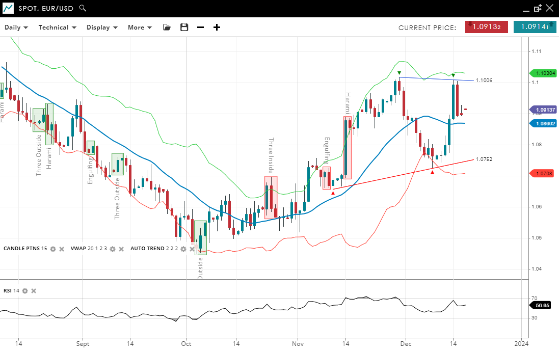 - The support level is quite near at 1.0708, indicating potential for a strong base, while resistance is at 1.1032.