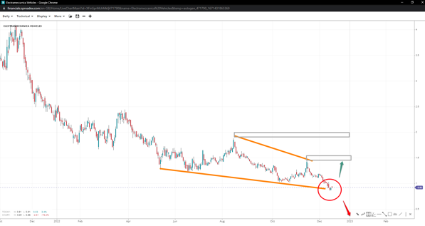 The stock seems it has put in a falling wedge at 0.85  with chances of reversal rising. 1.45 and 1.90 are major medium-term swing highs bulls need to regain control for a chance at higher levels. On the other hand, breaching the low might lead to the 0.50 handle, being round support.