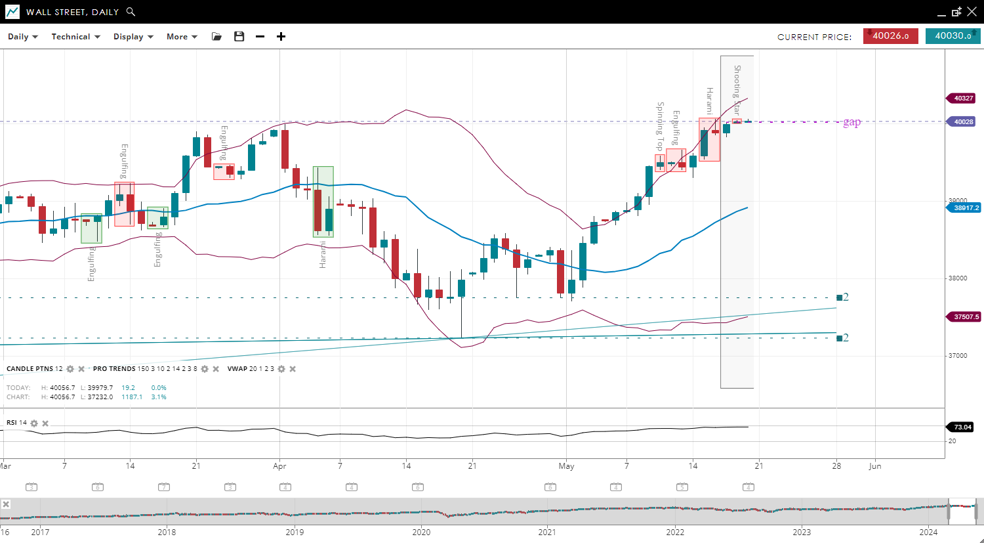 | Wall Street | Bullish | Impulsive | 40,028 | 38,917 | 37,507 | 40,327 | 73 |