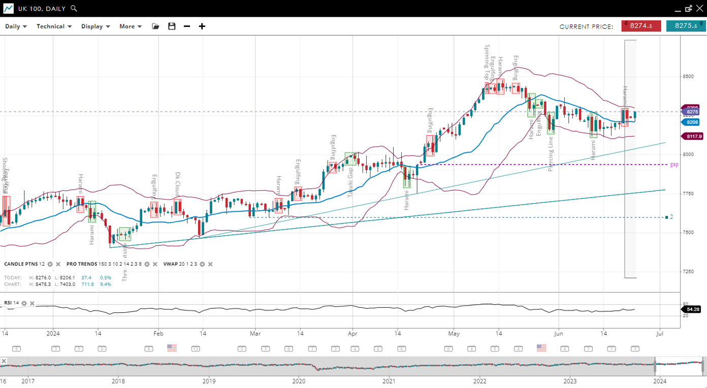 | UK 100 | Bullish | Corrective | 8208 | 8275 | 8117 | 8280 | 54 |