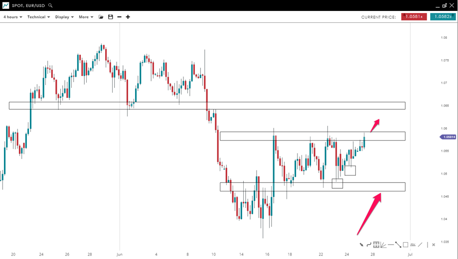 EUR/USD has been trading inside a parallel channel formation. The market is showing strong positive momentum by posting a higher low near the higher end of the channel. There is a high chance that this zone will be broken to the upside where the price could reach the 1.0650 mark.