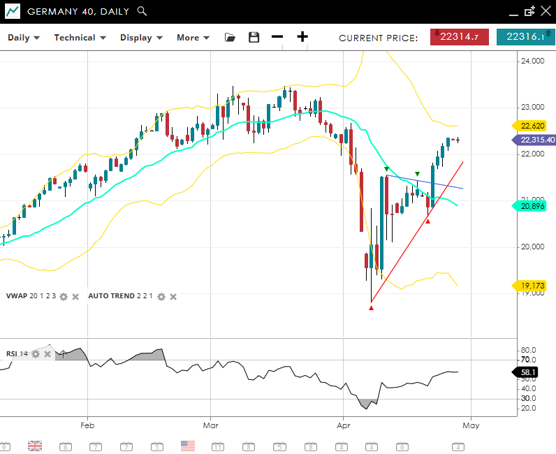 | Germany 40 | Neutral | Consolidation | 22,316 | 20,896 | 19.173 | 22,620 | 58.1 |