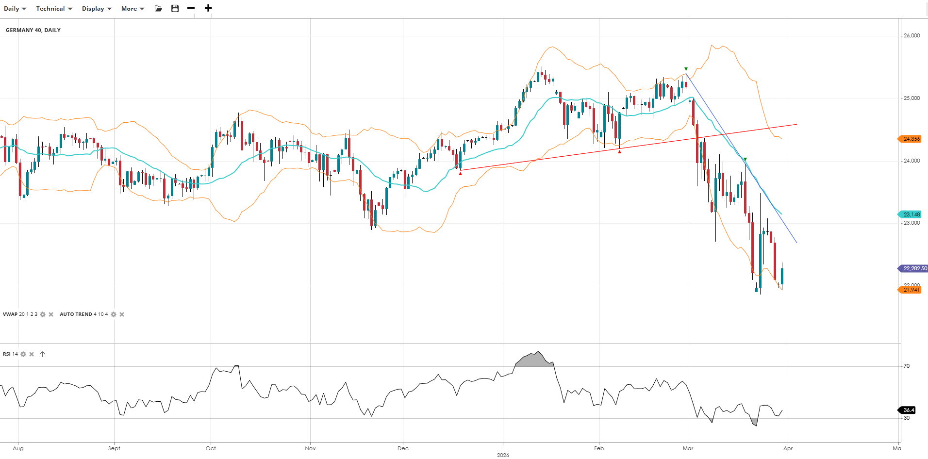 | Germany 40 | Bearish | Impulsive | 22,283 | 23,148 | 21,941 | 24,356 | 36 |