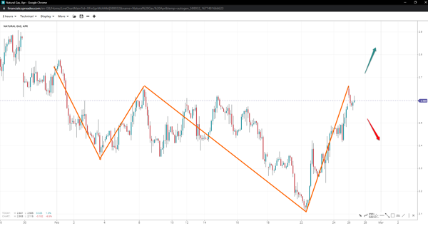 Natural gas spiked to a February high after putting a low in at 2.15, opening up the chances to an inverse head-and-shoulders pattern. With a double top at 2.65 in focus, a downward leg towards 2.35 could print the right shoulder and continue the upward trend. If the top gives in earlier, the next resistance lies at 2.80. Easing below might invalidate the pattern, bringing 2.15 back into the spotlight.