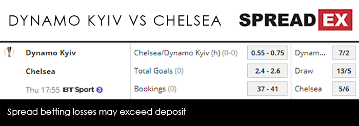 That lead shouldn’t be too tested on Thursday, with Spreadex offering a Chelsea/Dynamo Kiev (h) Goal Supremacy spread of 0.55-0.75, alongside a Total Goals spread of 2.4-2.6.
